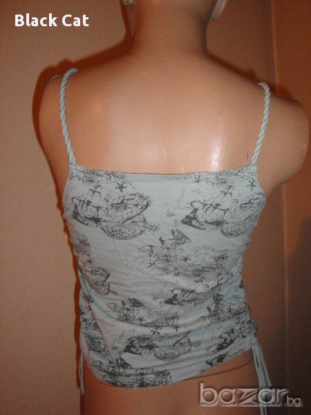 Предлагам чаровен сиво-зелен дамски топ. Носен 2-3 пъти, в отлично състояние, без никакви забележки. Етикетът с номера е премахнат, така че не мога да бъда категорична по отношение на размера, но мисля, че топът отговаря на XS / S / M / L. Най-добре е да се ориентирате по мерките: дължина (включително презрамките) – 53 см, широчина – 35 см. Това, обаче, са приблизителните размери, тъй като топът е изработен от сравнително еластична материя, което би дало няколко см. отгоре, при нужда.
