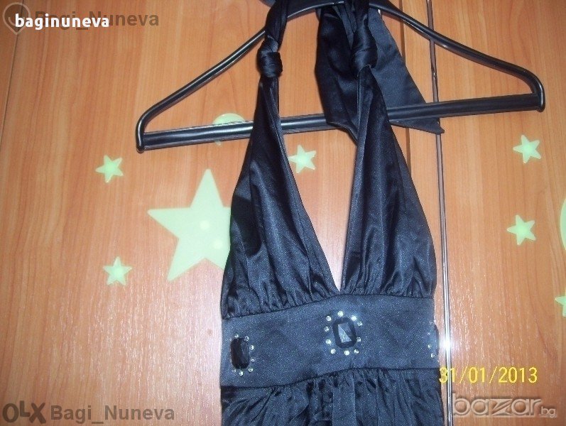 Бутикова черна сатенена рокля с гол гръб → Обява 9170936