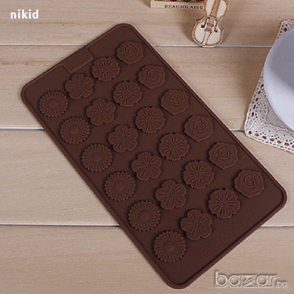 24 различни цветя плитки Силиконов молд форма декорация украса макарон фондан тесто торта сладки → Обява 9175439