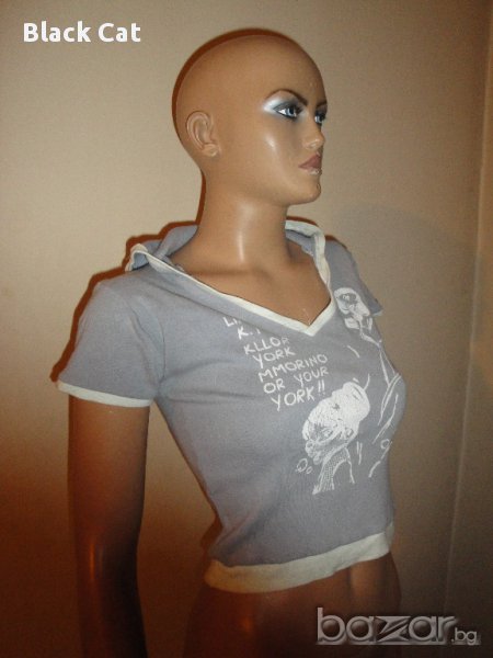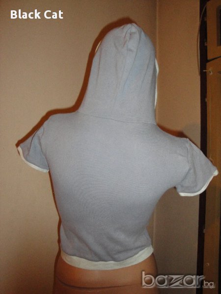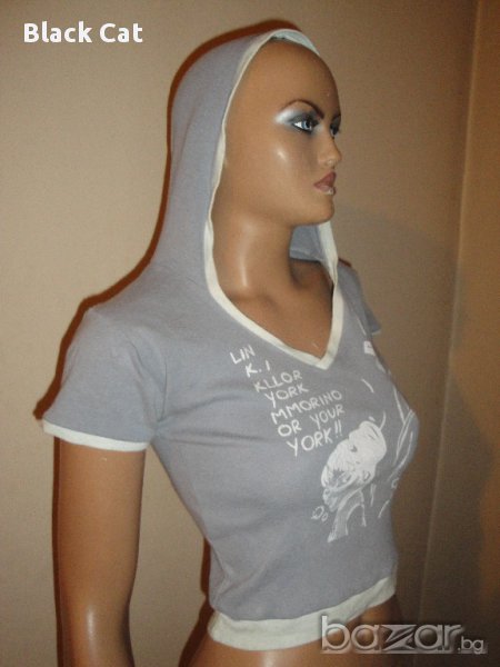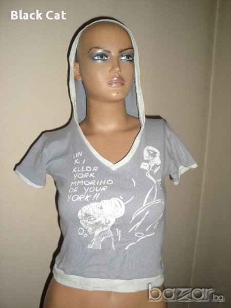 Кокетен сив дамски топ с качулка, суичър, дамска блуза с къс ръкав, тениска, ръкави, дамско бюстие → Обява 9220818