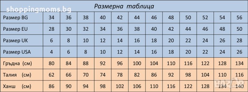 За ваше улеснение, можете и да използвате приложената към снимките на продукта размерна таблица.