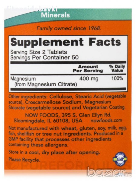 Начин на приемане: Приемайте NOW Magnesium Citrate 2 таблетки дневно с храна.