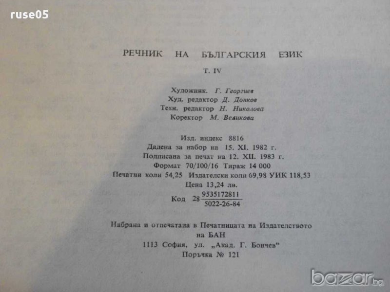 Книга "Речник на българския език - том 4 - БАН" - 868 стр. → Обява 9285337