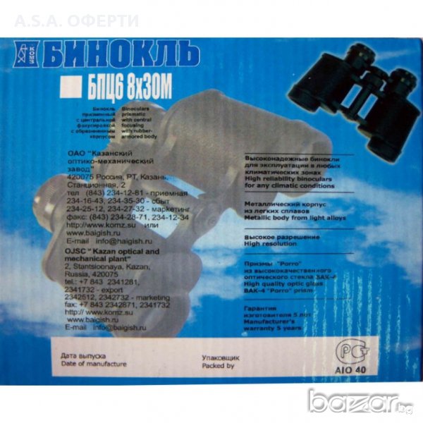 Модела е добре познат у нас от годините преди демокрацията и без да блести с някакви особени характеристики се доказа във времето като надежден и непретенциозен уред при всякакви условия. Произведен е за BAIGISH, руска фирма с доказано добри оптични уреди. Многослойно просветлена оптика на ОАО КОМЗ (Казанский оптико-механически завод) с висока резолюция.