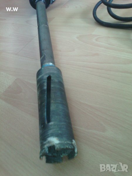 диамантено пробивна ма6ина с боркорона ф-50.1600.вт. 110.вт-..диаметър на боркороната-52.мм.и удължител боркорона-300.мм..ма6ината работи отли4но