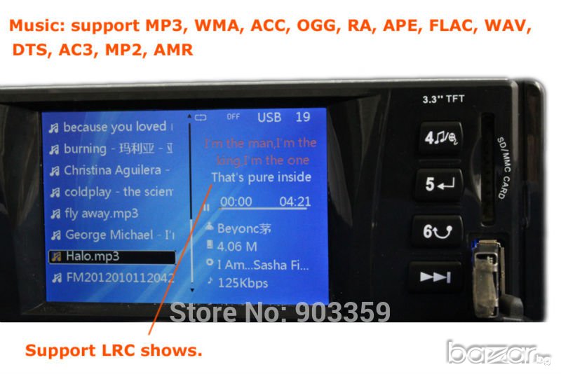 Mp3 / Mp4 / Mp5 Car Player - възпроизвежда на дисплея видео клипове, филми и др.
