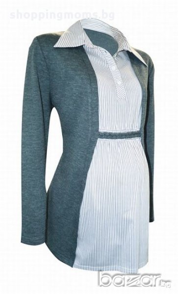 Вградена риза с дълъг ръкав , в комбинация: сиво плетиво и ризарско бяло черно райе. Едно наистина интересно предложение с модерен дизайн.Модела е практичен и за макси дами.