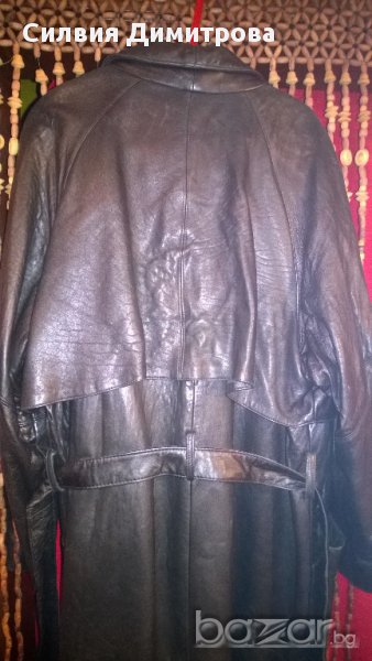 естествена кожа,черно,почти не е носено ,няма протрито и захабени места,подплата,която може да се свали,много хубава кожа;от рамо до рамо 46см;дължина 120см;широчина 59см