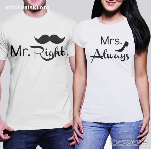 Уникална Мъжка тениска Mr. Right и Дамска тениска Mrs. Аlways Right