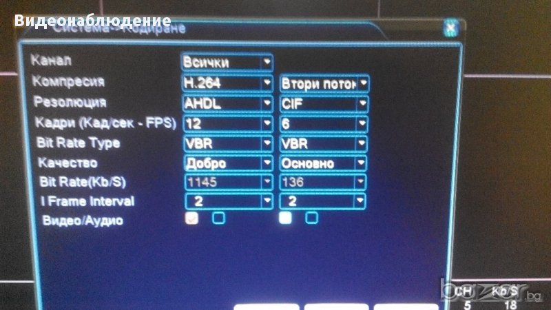 4 канален AHD/1080N/720р/960Н/D1+ 99.88 лв. / 4 канален AHD/1080N/TVI(HIKVISION,+)/HDCVI(DAHUA,+)/960Н 99лв/ 4 канален AHD/1080N/TVI(HIKVISION,+)/HDCVI(DAHUA,+)/960Н+IP камери 119.90лв / 8 канален АHD/1080N/720р - 109.90лв / 8 канален AHD/1080N/TVI(HIKVISION,+)/HDCVI(DAHUA,+)/960Н+IP камери 119.90лв / 8 канален AHD/1080N/TVI(HIKVISION,+)/HDCVI(DAHUA,+)/960Н+IP камери 149.90лв