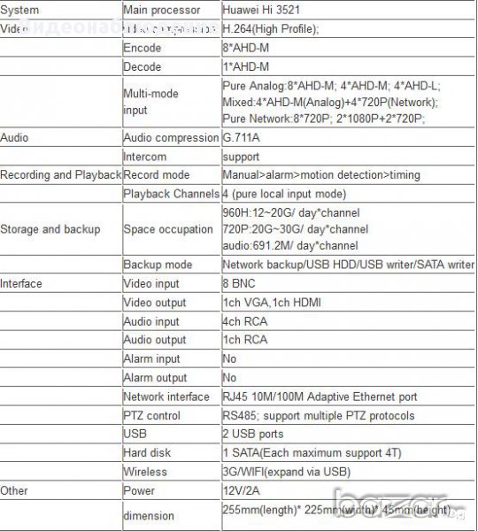 Аналогов режим: 4 или 8бр. от старите аналогови камери или (AHD-M) HD аналогови камери с ултра висока резолюция