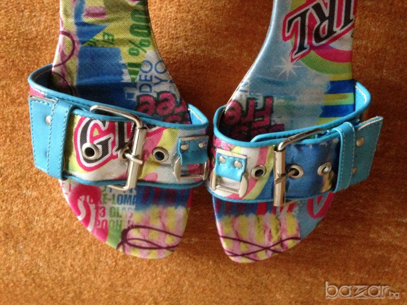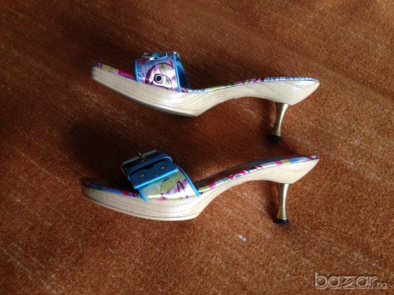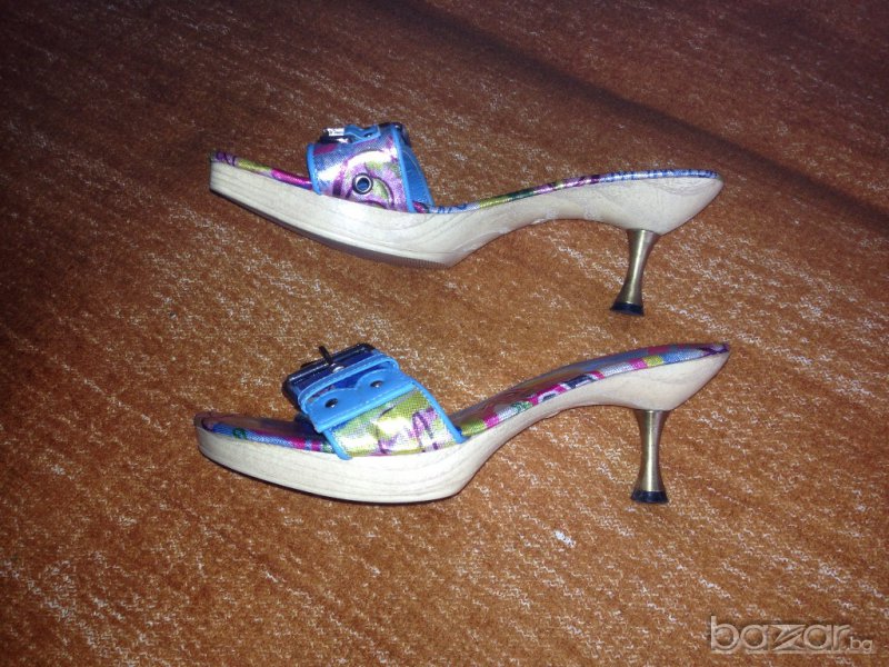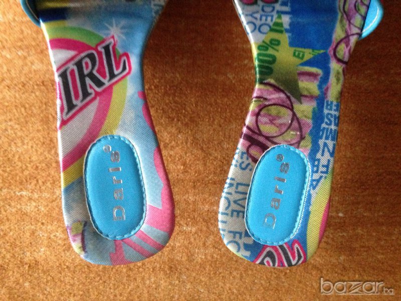 Оригинални цветни сандали на ток на фирма "Дарис". Номер 39. Само мерени. Стелка от край до край около 25,5 см
