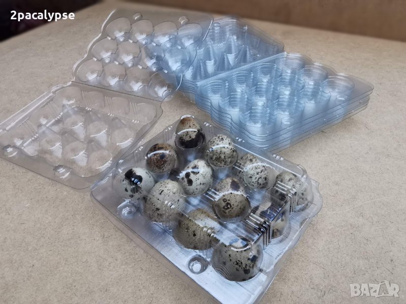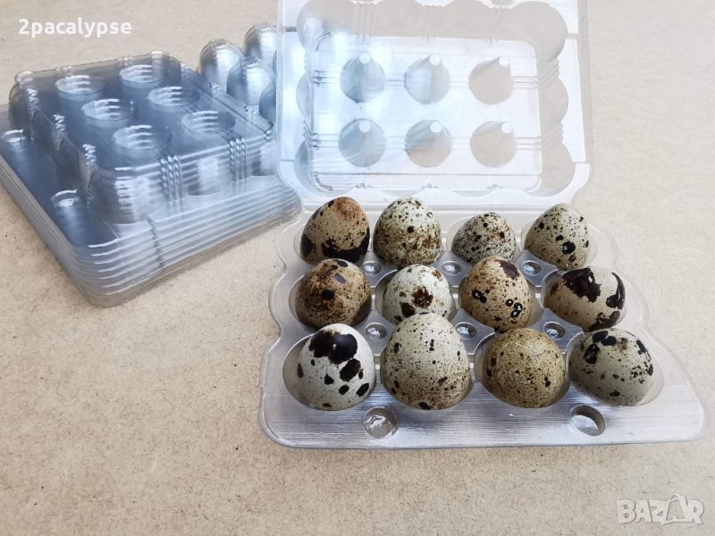 пъдпъдъчи яйца - 12 гнезда,стандартен размер с атрактивен дизайн, от прозрачна пластмаса, в отговор на нарастващото търсене на потребителите за предварителен преглед на храната преди покупка. По-здрави, с по-добро затваряне. Капак с права част, на която може да се залепи етикет. Разполага със стакинг ограничители за редене на повече опаковки една върху друга. Спазен е стандартния външен размер, така че да може да се използват и бандероли за поставяне на информация.