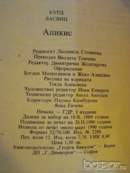 Книга "Апикис - Курд Ласвиц" - 192 стр. → Обява 9596899