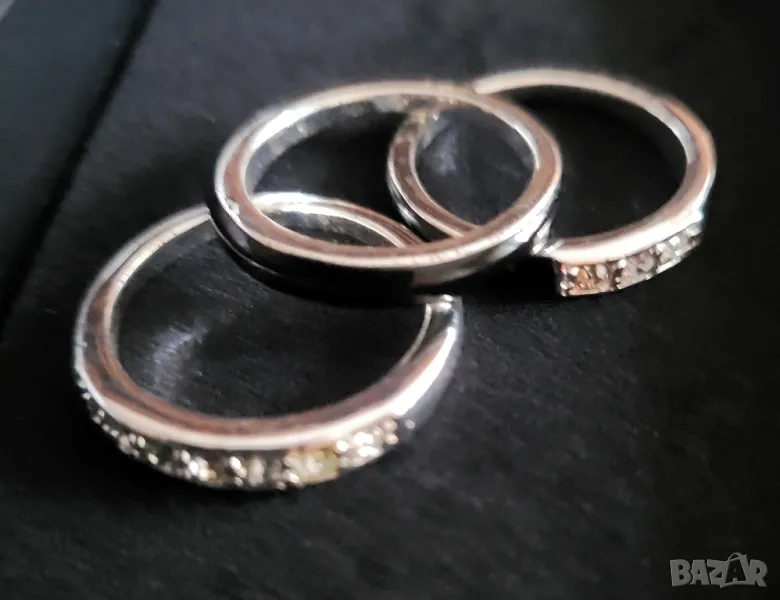 Пръстените са: 1 с черен емайл, 1 с черен емайл и камъни и 1 сребрист с камъни. Могат да се ноят заедно или по отделно. Размер 8 - 18мм.