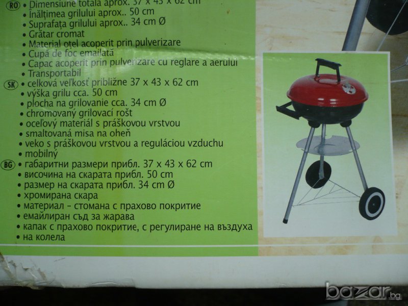 BBQ , барбекю , скара , НОВО БАРБЕКЮ КУПОЛНО СФЕРИЧНО , с капак НА КОЛЕЛА С РАЗМЕРИ 37 х 43 х 62 см. / барбекю количка GOGOMOTO.BAZAR.BG