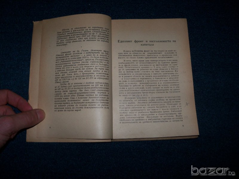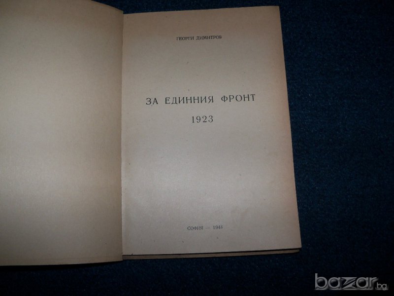 "За единния фронт 1923г." - сборник статии излезли в навечерието на Септемврийското въстание 1923г. с автор Георги Димитров, издание 1948г. Книгата е отпечатана преди смъртта на комунистичекия лидер. Книгата е с меки корици 86стр. в отлично състояние.