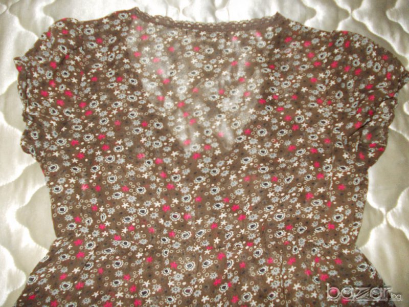 КАФЯВА РИЗКА НА ЦВЕТЯ,ПРОЗРАЧНА МАТЕРИЯ. ПО ЕТИКЕТ Е ХС,НО ОТГОВАРЯ НА С/М.