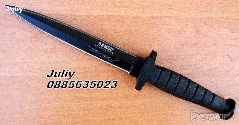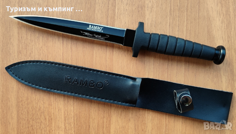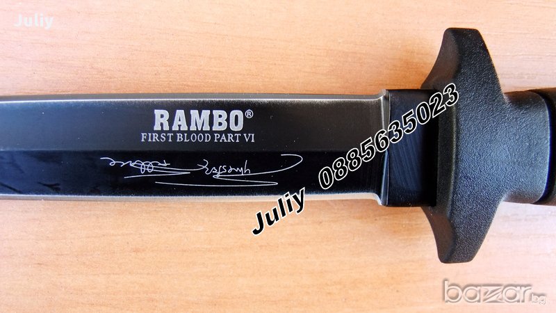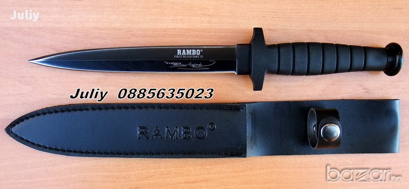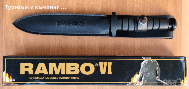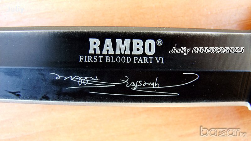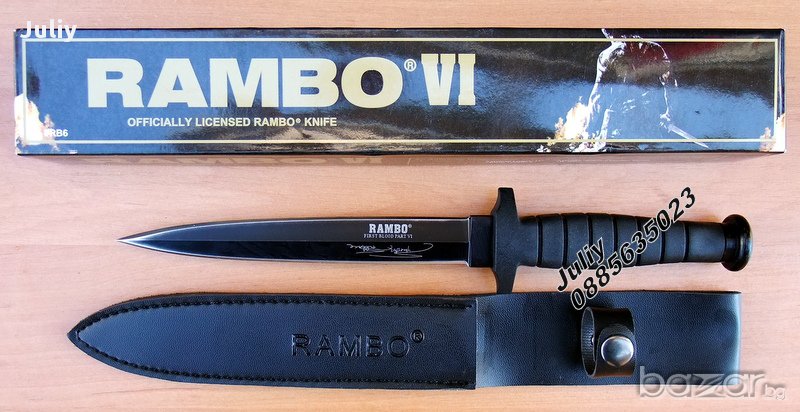 Включва черен кожен калъфза колан с надпис "Rambo".