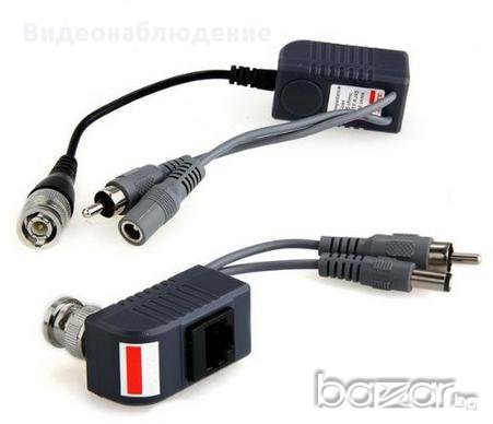 Комплект Видео Balun Transceiver за CCTV камера BNC UTP RJ45 + захранване по CAT5/5E/6 Кабел