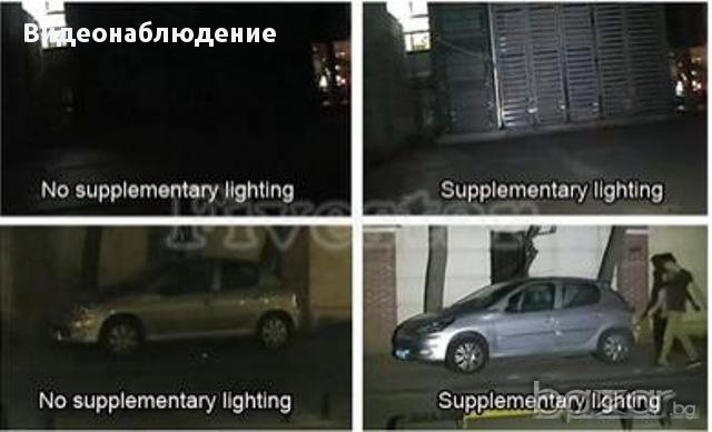 Пoддържа спомагателно осветление за нощното виждане на камерите за видеонаблюдение на разстояние 50 метра.