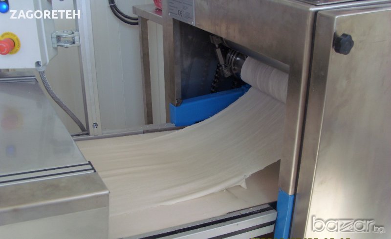 баници, тригуни, баклави, саралии, полуфабрикати от точени кори, домашна юфка.Два брашноръсача - отдолу и отгоре на кората.Всички скорости са плавно регулируеми.Машината има опция за монтиране на подпичащ вал, за придаване на еластичност на кората!