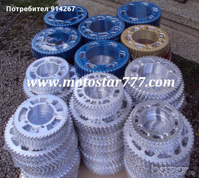 Всички модели предни и задни пиньони за мото крос, ендуро, пистови, турст, чопър, атв. Алуминиеви сплави, стоманени, ергалови, закалени. Продаваме и на едро. Цени започващи от 45 лева. Издаваме фактури по ддс.