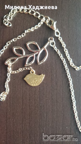 Нежно колие Birdy, с възможност за регулиране на позицията на листото и птичето. Налично в сребрист и златист цвят