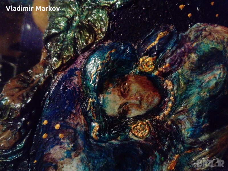 Изключително красива Гръцка картина рисувана на дърво-1949год-с пластична орнаментална рамка! → Обява 9822588