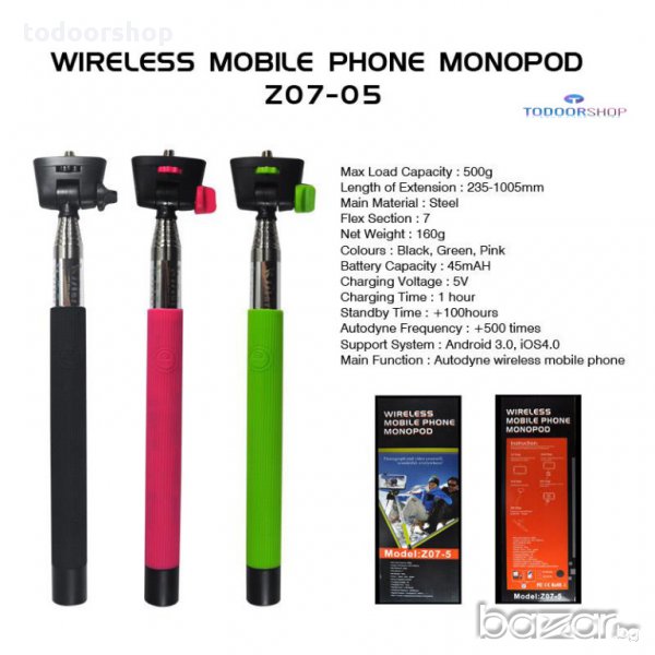 Монопод за селфи самоснимачка. Снабден със здрава и сигурна стойка със стандартен винт за смартфон , камера , Go Pro hero , видеорегистратор , екшън камера и др.