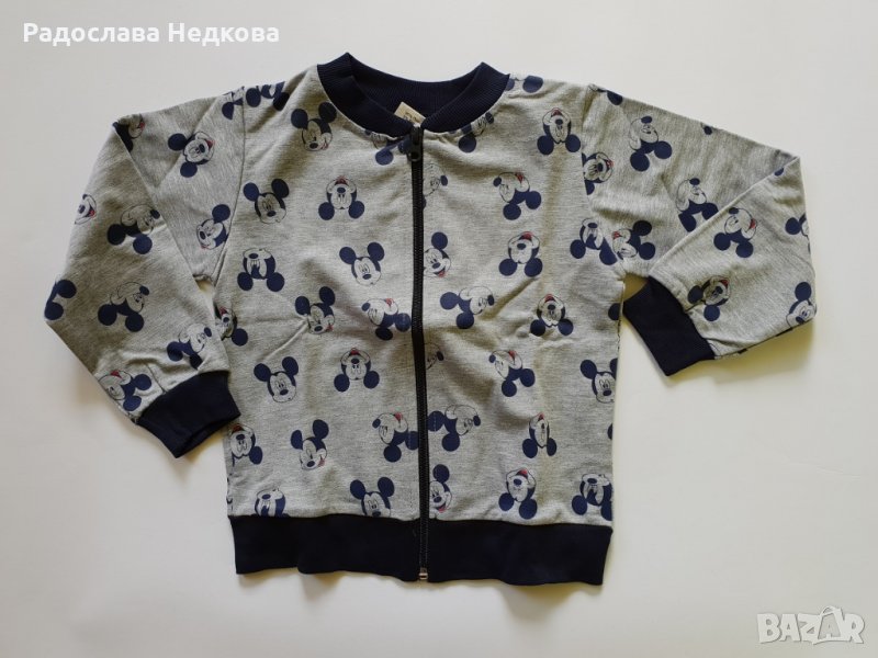 Страхотен комплект с Мики Маус в сив цвят - горнище с цип и долнище тип потур. Българско производство! Налични размери - 110 и 116 см .