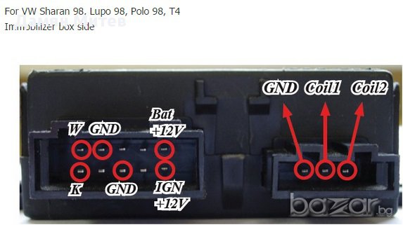 При коли с иммо бокс,се премахва иммо бокса K и W линията се дават на късо и се връзват към К-линията на емулатора!Подава се + през контакт и -.(Емулатора вече замества иммо бокса!)